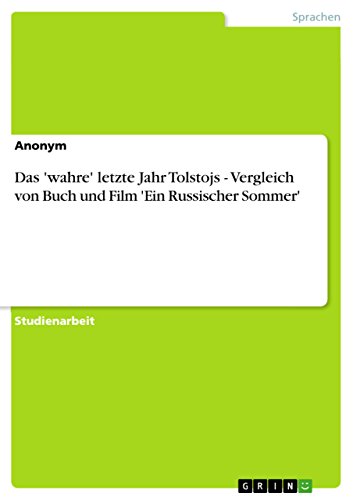 See all customer reviews...Das 'wahre' letzte Jahr Tolstojs - Vergleich von Buch und Film 'Ein Russischer Sommer' (German Edition), by Anonym PDF